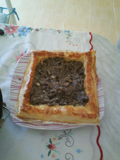 Corte o pato em pedaços pequenos, Numa panela de Pressão , faça um refogado com a cebola os alhos ,o louro e o azeite o sal e a pimenta, junte o pato e o vinho tinto , leve ao lume cerca de 20 minutos .Ligue o forno a 200º , corte a massa folhada em 2 ou 4 rectângulos iguais. Com uma faca faça um rebordo ao longos dos rectângulos, mas sem os cortar até ao fundo. Pincele toda a superfície com a gema de ovo e leve ao forno quente até a massa cozer e folhar completamente.Corte o pato em pedaços pequenos e reserve o liquido , Numa frigideira faça novamente um refogado com a cebola e alho, junte o pato e adicione farinha maisena juntamente com o liquido até obter uma pasta , depois abra a massa com uma faca e recheie com o pato.Sirva com uma salada verde.Bom Apetite