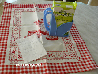 Juntamente com o suporte de leite a Carla enviou-me um pano de cozinha muito bonito para me alegrar a cozinha.