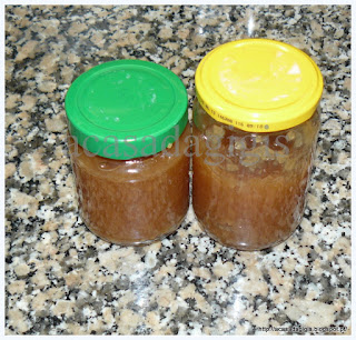 Enroscar muito bem e por os frascos num tacho com água quente, deixe ferver cerca de 30 minutos ( deixei-os de cabeça para baixo ).