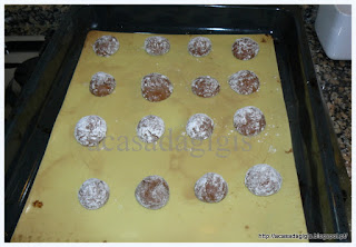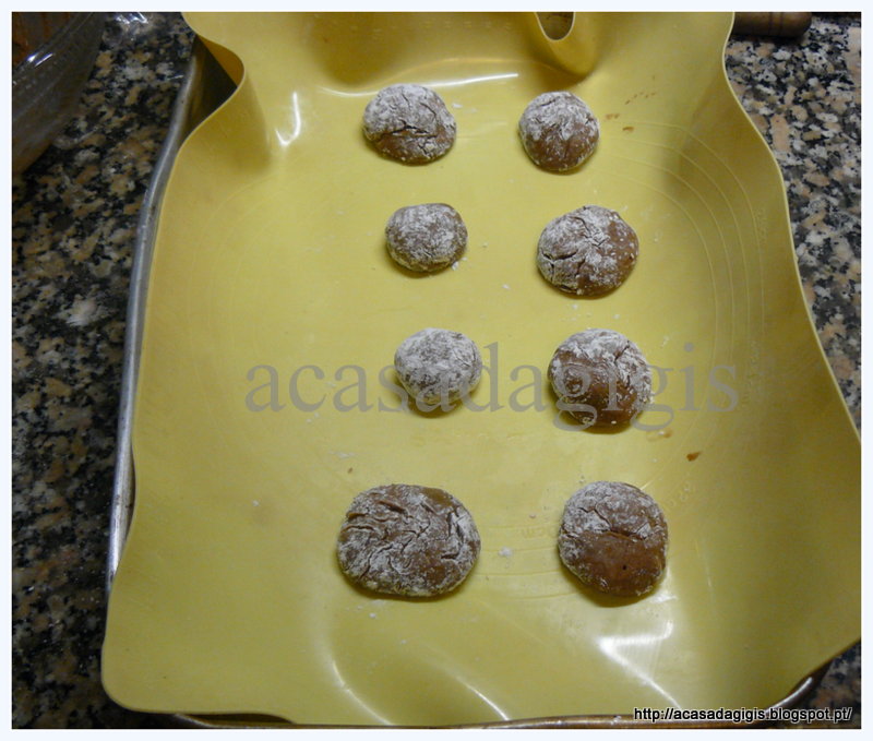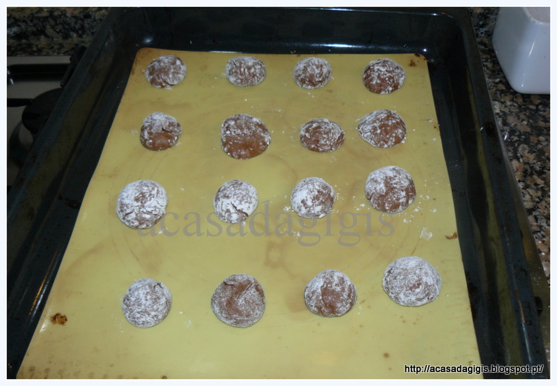 Adicione a farinha e o fermento e misture 15 segundos na velocidade 6. Deixe a massa descansar cerca de 15 minutos. Molde pequenas bolas e disponha no tabuleiro. Com a ajuda de uma garfo achate as bolas formando um biscoito. polvilhe com açúcar e leve ao forno a 180ºC cerca de 15 minutos. Deixe arrefecer sobre uma rede antes de servir ou de guardar numa caixa com tampa hermética.