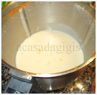 Adicione a carne e o chouriço, o leite, a farinha, tempere com sal e pimenta, envolva com a espátula e programar 6 minutos, temperatura 100, velocidade1 na tecla inversa.