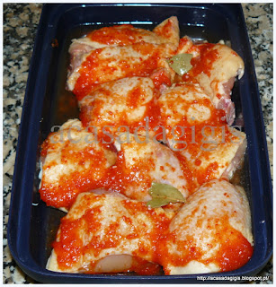 Depois dos excesso do Natal e Ano-Novo nada melhor que um frango assado no forno. Esta receita é do livro "As receitas da dieta dos 31 dias".Ficou um frango delicioso, vale a pena fazerem. Fiz em dois pirex fpois foi todo assado no mini-forno. Acompanhei com batatas e brócolos assados no forno, temperados com sal , azeite e massa de pimentão caseira. Fiz assim: