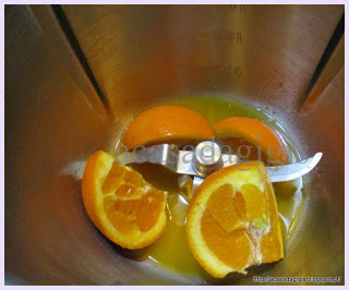 No copo da yammi 2  coloque a laranja  cortada em quatro com casca e  com o sumo de 1 laranja e programe 15 segundos, velocidade 9.