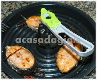 Grelhe o salmão na actifry 2 em 1 e ao mesmo tempo,coza a massa conforme instruções no pacote , coza os brócolos junto e reserve.